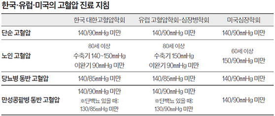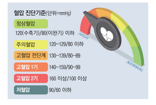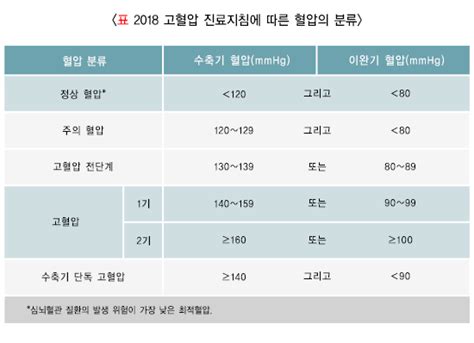 고혈압은 다음과 같은 기준으로 구분됩니다:
