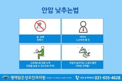 안압 상승을 예방하고 관리하기 위해 다음과 같은 방법을 실천해 보세요: