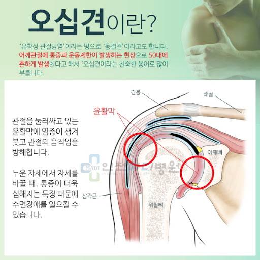 오십견, 또는 유착성 피막염은 많은 사람들이 겪는 흔한 어깨 질환입니다. 나이가 들어감에 따라 관절의 유연성과 운동범위가 감소하면서 발생할 수 있는 이 문제는 흔히 중장년층에서 많이 나타납니다. 오십견은 통증과 함께 어깨의 움직임을 제한하는 특징이 있으며, 생활 전반에 걸쳐 불편함을 초래할 수 있습니다. 이러한 오십견의 증상과 원인, 그리고 치료 방법에 대해 자세히 살펴보도록 하겠습니다.