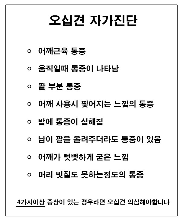 - 초기에는 팔을 올리거나 뒤로 젖힐 때 통증이 느껴질 수 있습니다.